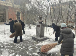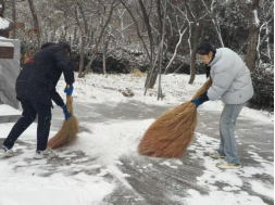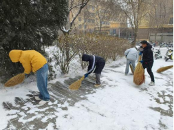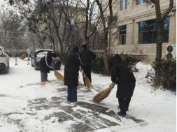 活动中,师生们不畏严寒、分工协作,对yl6809永利集团门口、周边道路以及常师贞小广场等重点区域进行了集中清理。扫帚与地面的摩擦声此起彼伏,忙碌的身影在白雪中勾勒出一道道温暖的风景线。经过全力奋战,主要通行区域的积雪得到有效清除,为师生的安全出行提供了有力保障。