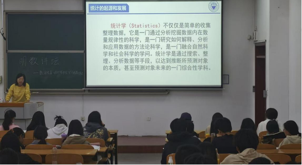 统计系宣讲会于9月25日于行思楼A112举办,刘秀芳以“统计思维与数据分析”为主题,结合实际案例讲解了统计学在金融、医疗、社会科学等领域的应用。她指出:“统计学不仅是数据分析工具,更是一种逻辑思维方式,能帮助我们从复杂现象中发现规律。”