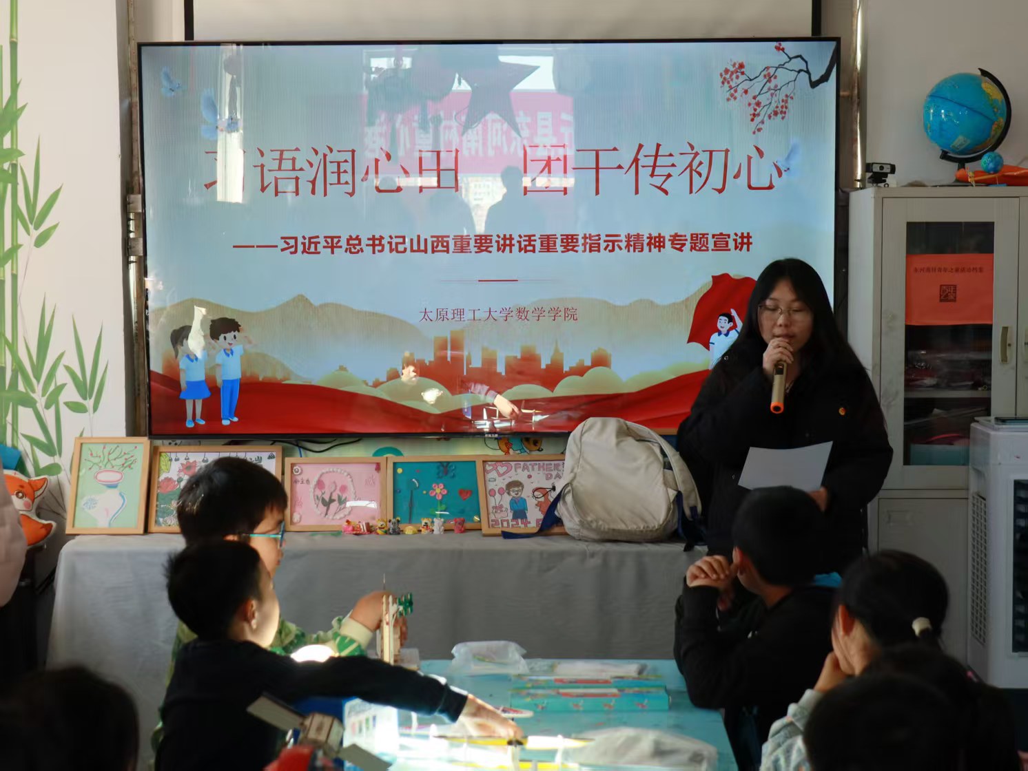 11月2日,为深入学习贯彻习近平总书记系列重要讲话重要指示精神,传承红色基因,厚植爱国情怀,yl6809永利集团第三期青马工程“尚德班”学员来到大同市灵丘县东河南村童心港湾,开展“习语润心田,团干传初心”主题团日活动,为乡村孩子们送上一场兼具思想性与趣味性的“红色盛宴”。