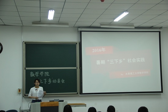 2016年6月20日,我院于明向校区行思楼A108举办了2016年“三下乡”暑期社会实践动员大会。我院2016年“三下乡”暑期社会实践队全体队员参加了会议,由我院团委副书记刘彤、学生会主席李俊炯主讲。