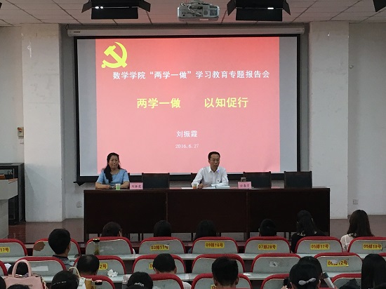 6月27日,我院在明向校区经济管理学院二层报告厅举办“两学一做”学习教育专题报告会,邀请马克思主义学院副院长刘振霞副教授做了专题报告。学院班子成员、全体教师党员、学生党员和入党积极分子参加报告会,我院党委书记任喜莹主持会议。