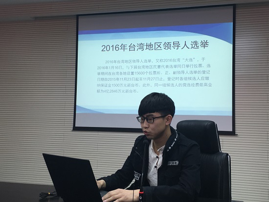 本次民主生活会以“台海问题,两岸关系”为主题,围绕台湾政党变更历史和台湾大选与国民党改选等时事政治热点展开学习和交流。会议首先由第二支部代表李一迪同学介绍了台湾重要政党的历史与发展现状,让同志们们对台湾地区的政权变更有了更深入的了解。随后第一支部代表郭杰同学介绍了2016年台湾领导人大选和国民党主席改选等热点话题,分析了当前台湾政治局势和两岸关系发展。接着,支部党员们就台海形势和两岸关系发表了自己的见解,对解决台湾问题的方针政策进行了热烈探讨,积极寻求实现两岸统一的措施和途径。