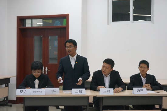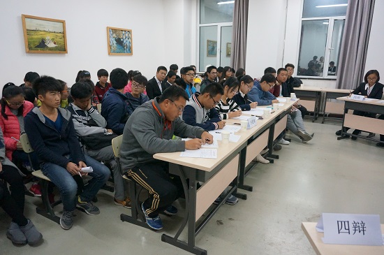 群雄舌战展雄风,争锋相对辩天下。为培养我院学生的人文素质和思辨能力,营造良好的校园文化氛围,2015年11月2日,我院团委联合科协于明向校区行思楼A205室举办“青悦杯”辩论赛半决赛。担任此次辩论赛的评委有科协主席魏晨曦、14级优秀辩手陈曦、张鑫、华梦琪、卢昭颖、裴龑一。