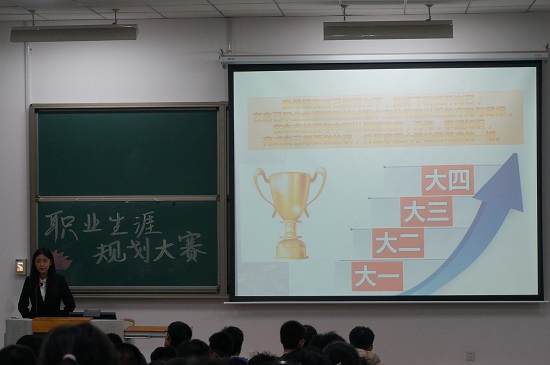 大赛通过“选手自荐”“直面评委”“评委综述”三个环节,考察选手的职业规划、行业分析、专业能力、语言表达等综合素质。从众多选手中脱颖而出的11位参赛选手按序号依次以PPT演讲的形式为大家展示了自己的职业生涯规划分析。他们大多从自我评价、职业分析、短期目标、长期规划等几个方面展开自己的精彩演讲,并且重点分析了自身性格与职业的结合点,从自己所处的环境出发,制定下自己的职业生涯之路。他们自信大方的演讲给了同学们很大的启发,让台下的观众也思考起自己的职业规划。同时,主评审们适时指出了选手作品的亮点和不足之处,并且根据他们的规划提出了中肯的建议。