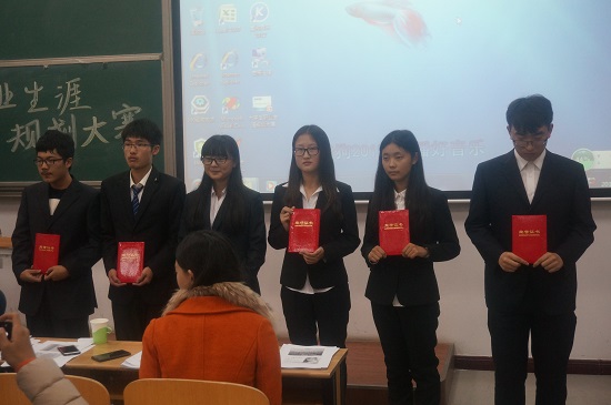 为引导同学们发掘自身的潜能,提高自己的就业竞争力和综合素质,我院于2015年11月13日晚7:30在行思楼B322教室举行职业生涯规划大赛。本次比赛有幸邀请了我校计算机软件学院学生会主席郑策、我院学生会主席李俊炯、副主席张尧、邵祺和陈丽宇担任本次比赛的主评审,同时由我院学生会各部门代表担任副评审,大一各班学生代表作为观众评审。