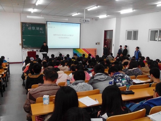 2014年11月15日,由我院科协组织,科协主席曾志远主讲的“明数讲坛(第二讲)”在行知楼C333教室举行。本次活动旨在让同学们对各种国家级赛事有更加深刻的了解,鼓励同学们提前为参加比赛做准备。