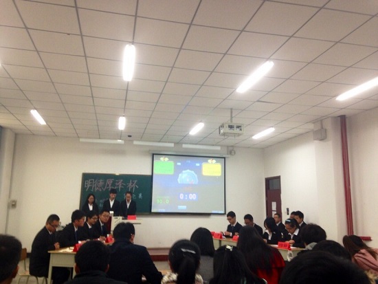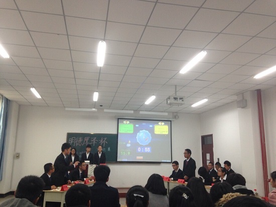 为响应校科协主办各学院承办“明泽厚德”杯的号召,2014年11月15日上午8:00~10:00于行远楼A206,我院“数辩队”同力学学院以“人一生平平淡淡是不是好的”为话题展开了一场激烈的辩论。
