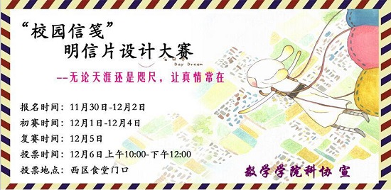 我院科协现举办“校园信笺”明信片设计大赛,面向全校征集电子版明信片。
