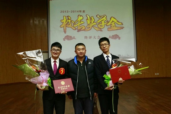 2014年11月30日,我校2013-2014年度校长奖学金终评大会圆满落下帷幕。我院信计1101班姜昆同学以优异的表现和卓越的成绩荣获2014年度校长奖学金,创新1102班李浩同学获得校长奖学金提名奖。