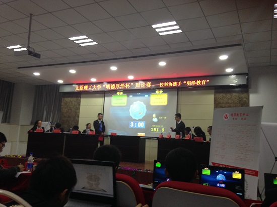 2014年12月6日下午2:00~6:00在明向校区政法学院一层报告厅,我院同政法学院、电力学院进行了激烈的辩论赛决赛,决赛共分三场,三场都围绕“天灾和人祸哪个更可怕”这个辩题展开。