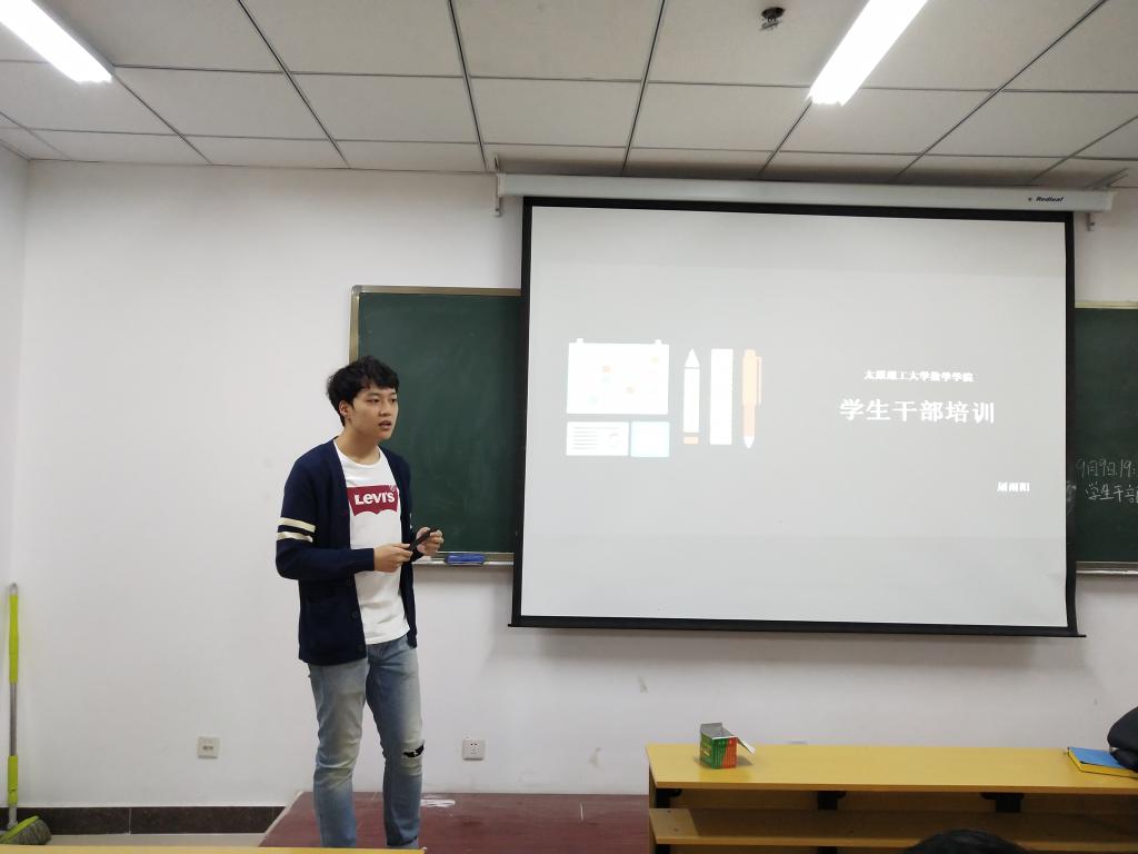 会议伊始,张鑫鑫作简要开场白,欢迎主讲人的到来。紧接着,屠雨阳为部长们介绍学生工作要求,其介绍内容主要为:学生组织的主要职能、为何办活动以及所办活动的主要流程三方面。并重点介绍了活动基本流程中的策划案提交内容,并进行标准策划案的展示,他表示:“活动的策划一定要做到滴水不漏,作为活动策划者更是要想法严谨、有条不紊,要有足够的胆识和眼界。”随后,李佳航对校园活动的定义、开展校园活动的意义以及活动所要经历的阶段作简要讲解,并针对“荧光夜跑”及“舌尖上的太理”两个活动提出:“办活动要有一定的针对性并且要不惧失败,勇往直前,敢于直面不足并加以改进。”最后,张鑫鑫对本次经验交流会进行了总结,表达对部长们的勉励与要求。