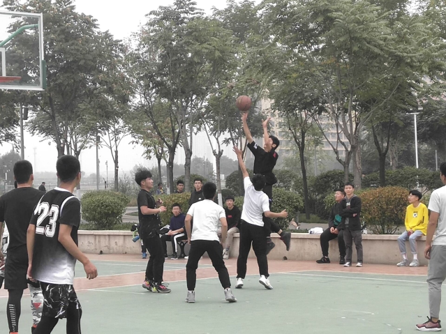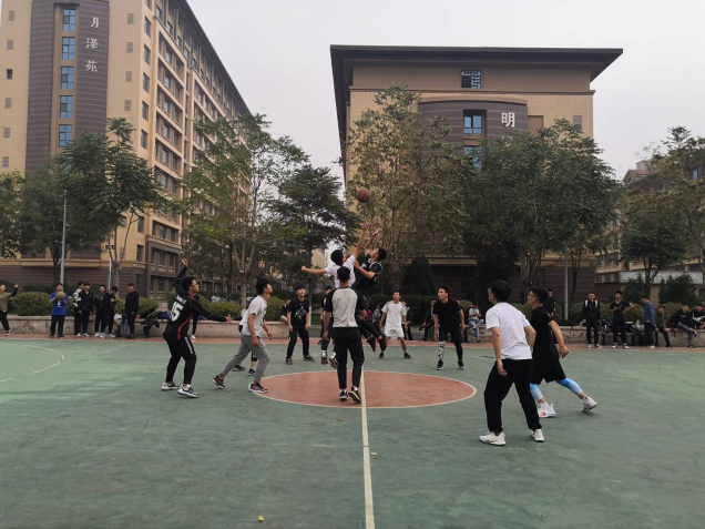 2019年10月12日中午,2019级信计、统计专业男篮队员于明向校区篮球场举行友谊赛。