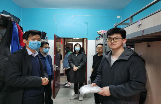 学院领导们与志愿者和毕业生们进行了亲切交谈,详细了解学生们的返校情况,并为他们送上了医用外科口罩和体温计等防护物资。贺婧指出,在疫情联防联控阶段,同学们要进一步增强“四个意识”,坚定“四个自信”,弘扬战“疫”精神,践行责任担当,团结一致、共克时艰,用实际行动诠释青春底色。张建文询问了同学们的返校情况和学习近况,叮嘱同学们要在做好安全防护的同时,多与指导教师沟通交流,高效率、高质量地完成毕业环节的各项学习任务。