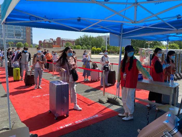 志愿者郝希钰表示:“鲜明的红马甲下透露着一颗炽热的奉献的心,作为一名党员志愿者,无私奉献、恪守岗位是我们的准则,即使今天的工作很累,但看到每一位被我们服务的学生,我觉得再辛苦也是值得的,理工学子,欢迎回家!”张玉波说道:“作为当代青年的我们,虽然不能像医护人员那样奋战在一线,但依旧能贡献出自己的一份力量,事情虽小,但意义非凡。无论是实地救助,充当人前的逆行者,还是志愿服务,默默做着力所能及的事,都是一种担当,防疫青年显担当,愈是艰难愈向前!”