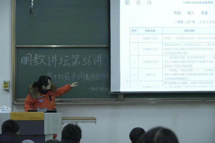 2023年12月21日下午,我院在行知楼C124召开了明数讲坛第56讲:第十四届市调赛经验分享会。本次讲座有幸邀请到市调赛的负责人贾晓芳老师对比赛进行详细介绍,帮助大家更好的认识比赛,准备比赛。