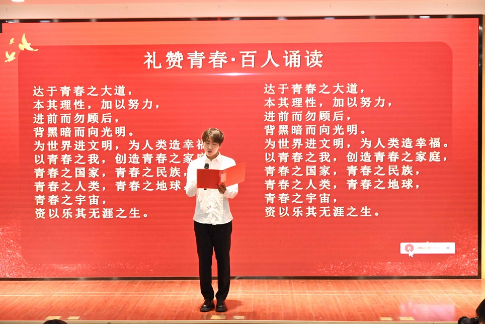 此外,尚德班还组织开展了“礼赞青春·百人诵读”大会。“以青春之我,创建青春之家庭,青春之国家……”,大家齐聚一堂,在学员唐子腾的领诵下,共同诵读李大钊先生的《青春》(节选),以朝气蓬勃的力量,品读青春的内涵和真谛,号召广大青年立鸿鹄志,做奋斗者。