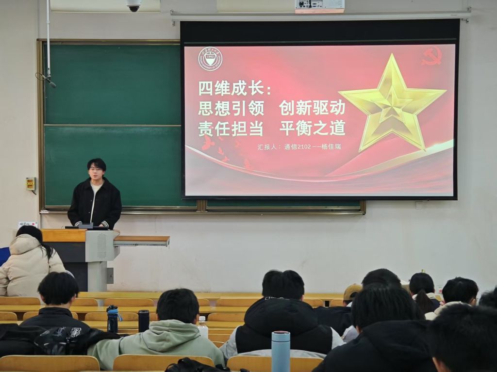 电子信息工程学院辅导员苏林静以“奋斗者 正青春”为主题,结合党史团史梳理青年工作脉。她提到1957年邓小平“青年团首要问题是坚持党的领导”的论断,以及2015年党中央首次群团工作会议“党有号召、团有行动”精神,强调青年工作要紧密围绕党的领导。同时,她介绍了脱贫攻坚先锋郭子涵“走出大山又回归大山”的事迹,生动诠释了“将个人理想融入国家需求”的时代命题,号召学员牢记习近平总书记嘱托,做“有理想、敢担当、能吃苦、肯奋斗”的新青年。