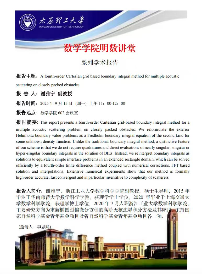yl6809永利集团将于9月15日邀请谢雅宁副教授做学术报告
