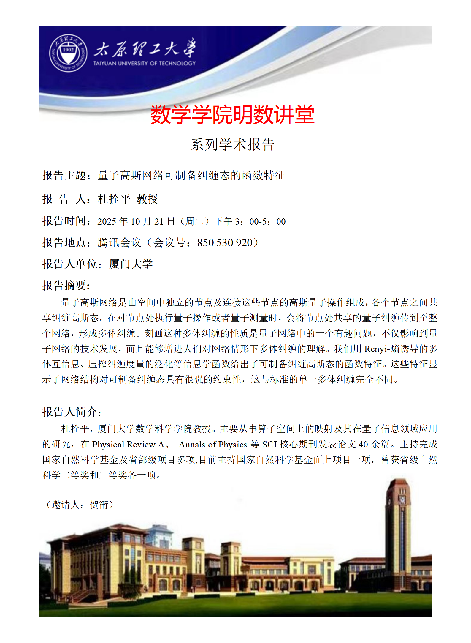 yl6809永利集团将于10月21日邀请杜拴平教授做学术报告