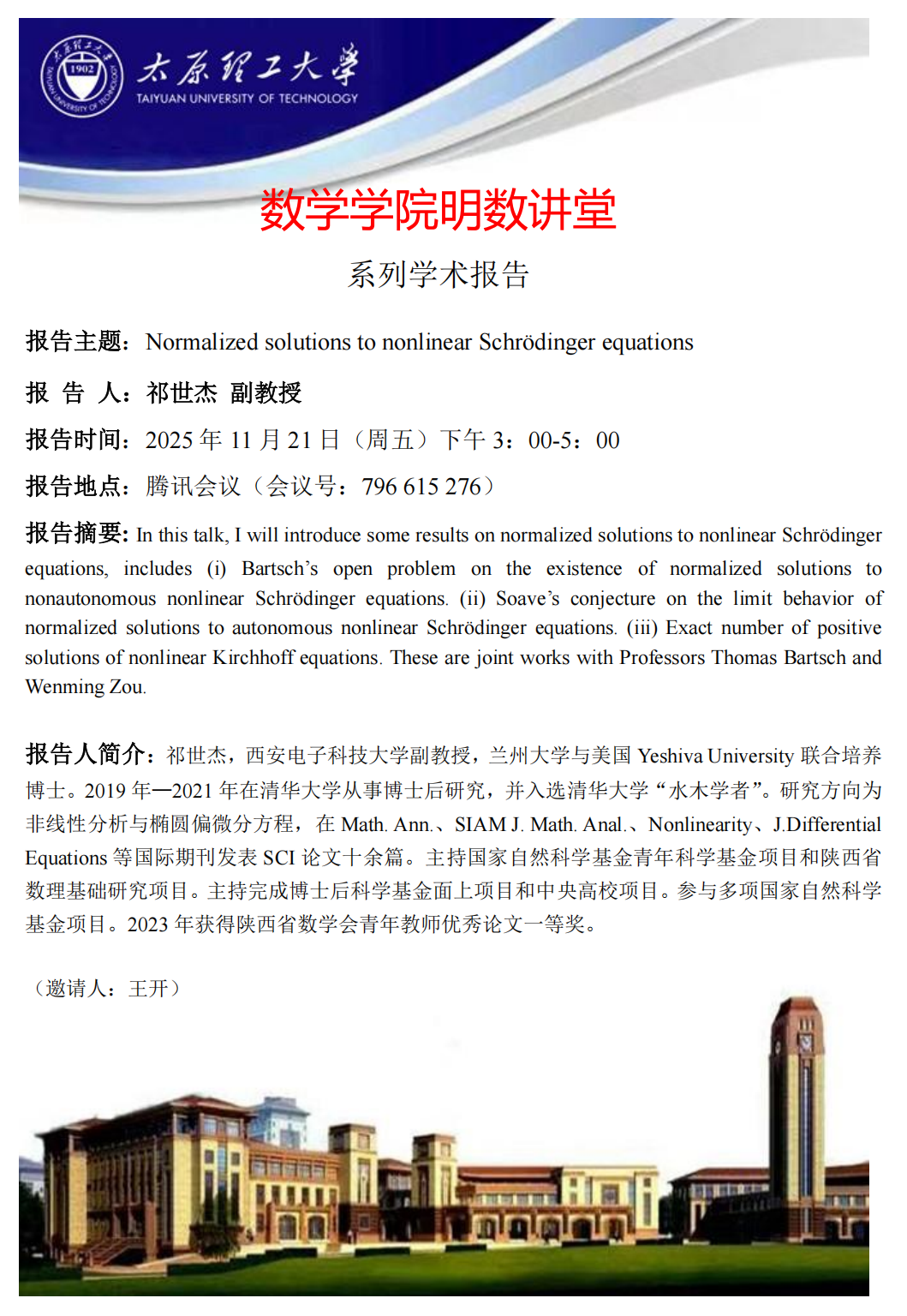 yl6809永利集团将于11月21日邀请祁世杰副教授做学术报告