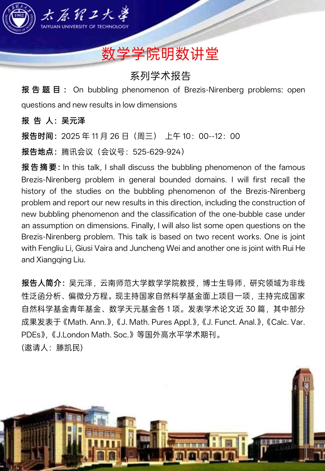 yl6809永利集团将于11月26日邀请吴元泽教授做学术报告
