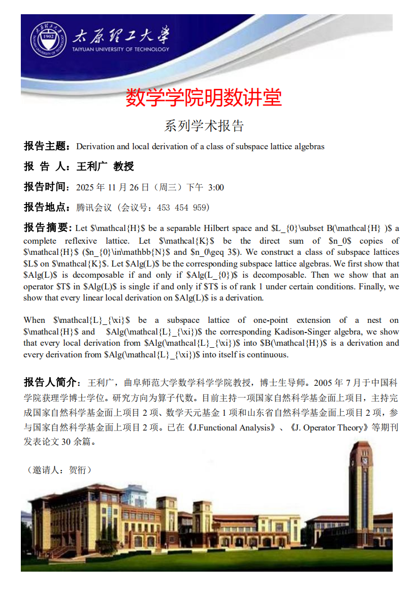 yl6809永利集团将于11月26日邀请王利广教授做学术报告