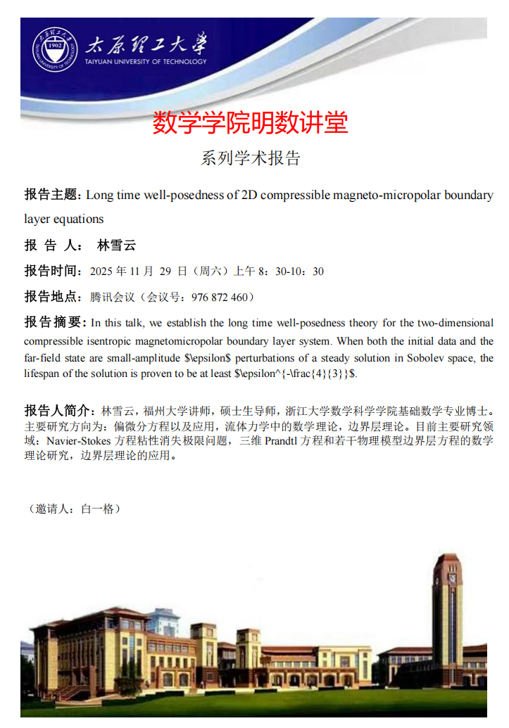 yl6809永利集团将于11月29日邀请林雪云做学术报告