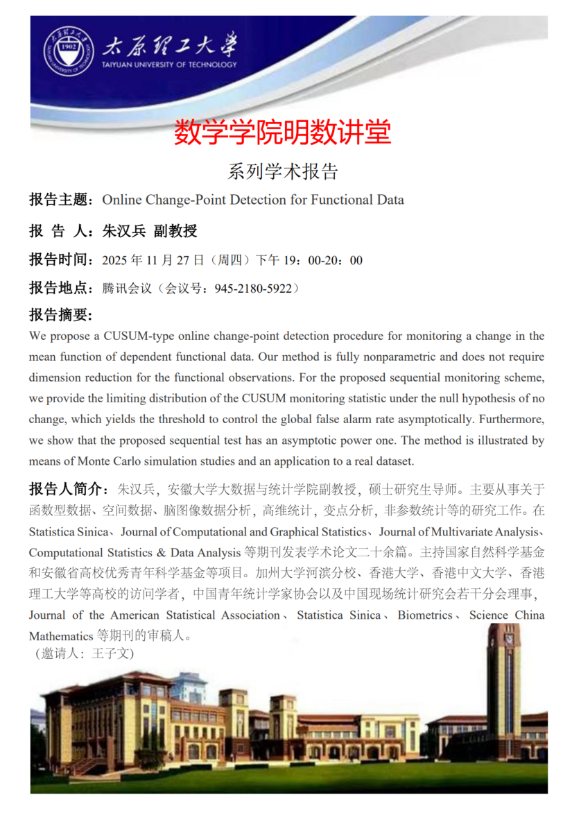 yl6809永利集团将于11月27日邀请朱汉兵做学术报告