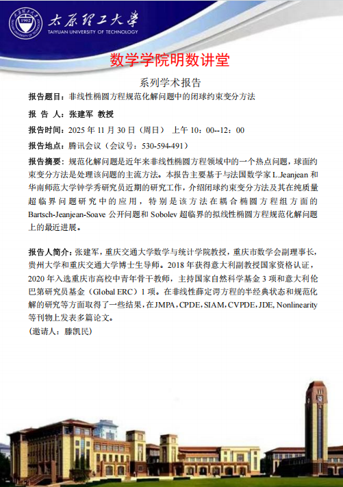 yl6809永利集团将于11月30日邀请张建军教授做学术报告