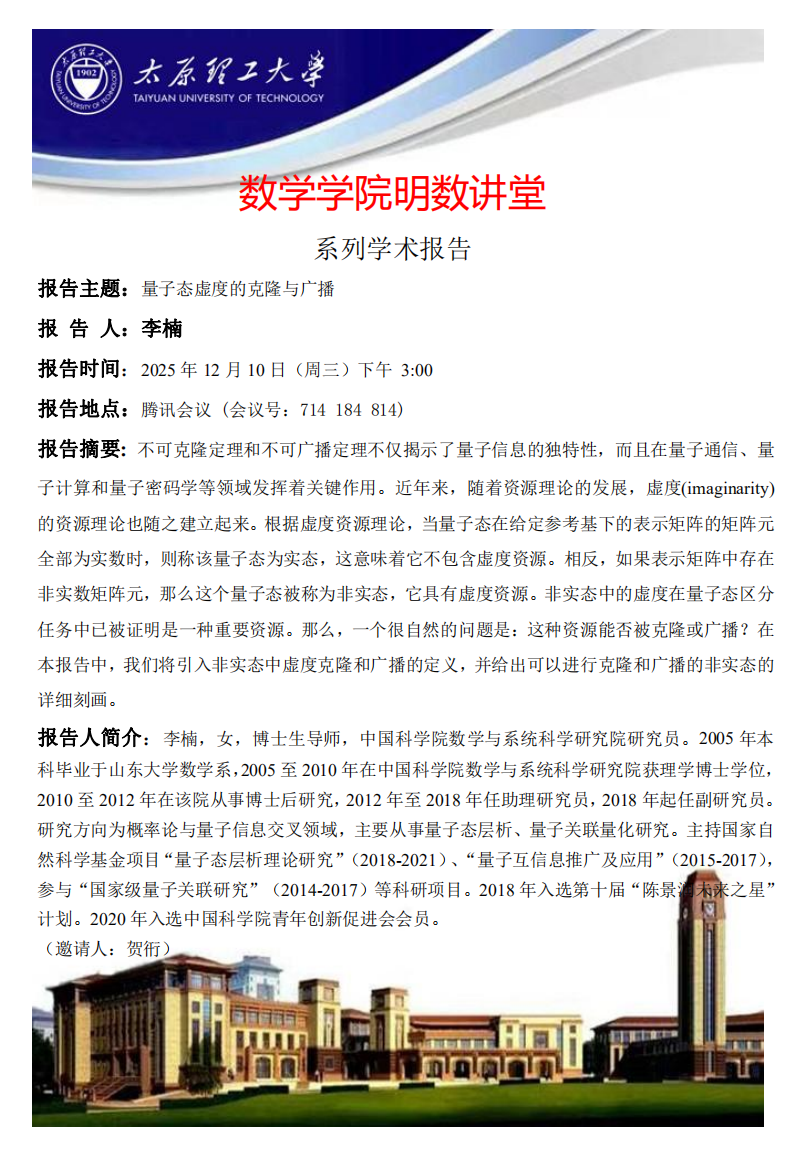 yl6809永利集团将于12月10日邀请李楠研究员做学术报告