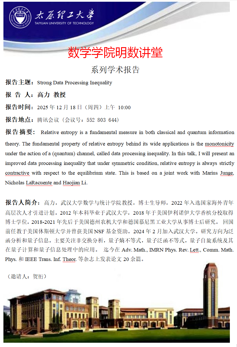 yl6809永利集团将于12月18日邀请高力教授做学术报告