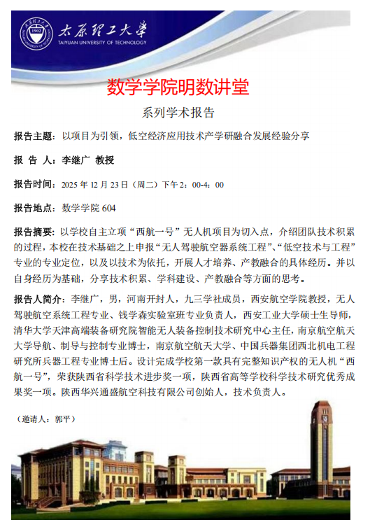 yl6809永利集团将于12月23日邀请李继广教授做学术报告