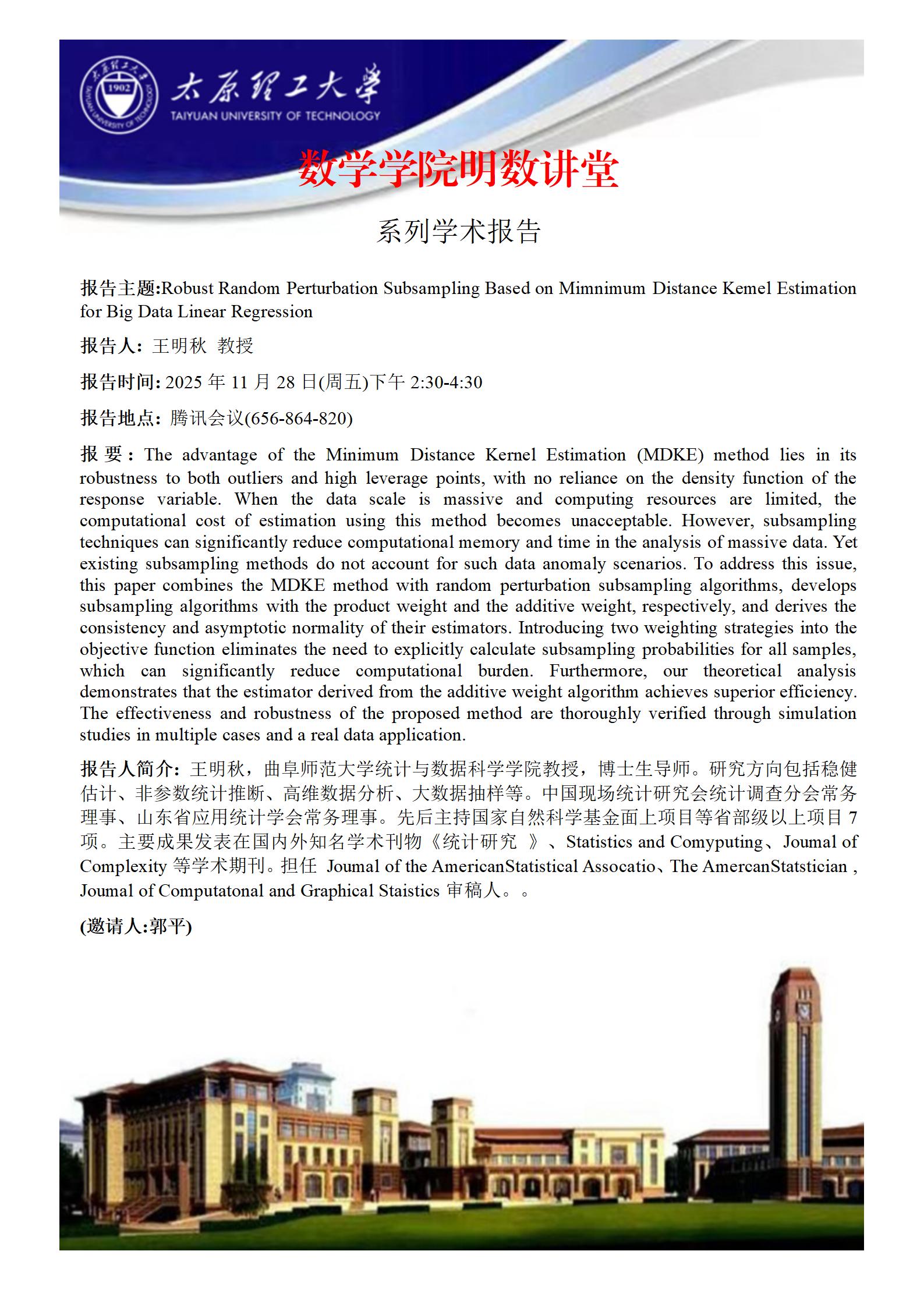 yl6809永利集团将于2025年11月28日邀请王明秋教授做学术报告
