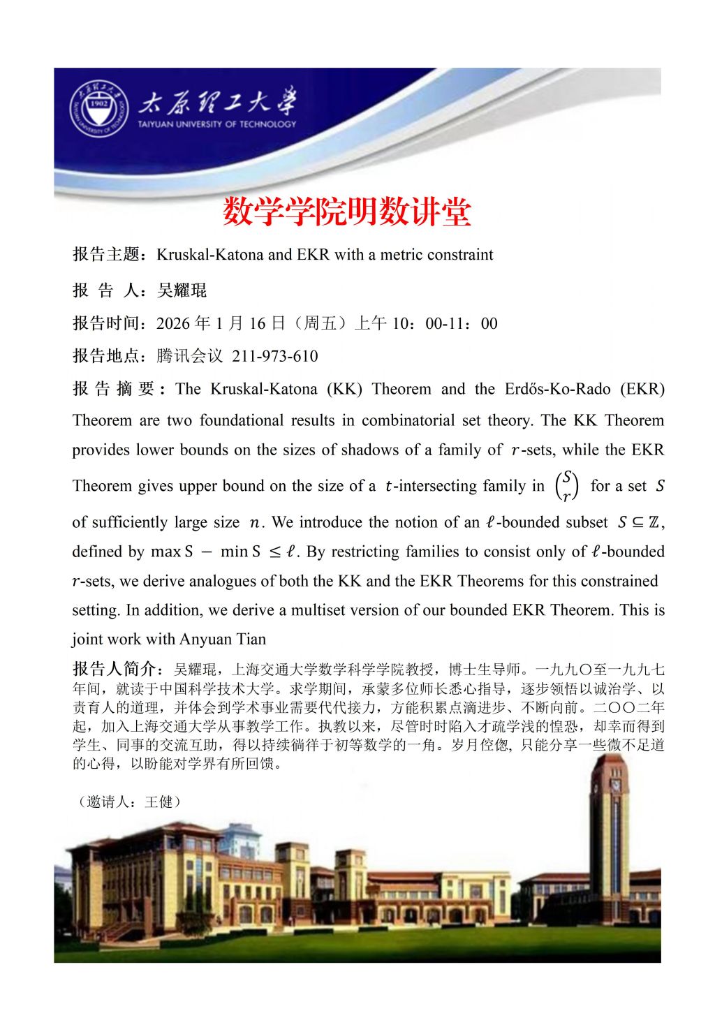 yl6809永利集团将于1月16日邀请吴耀琨教授,杨东雷教授做学术报告
