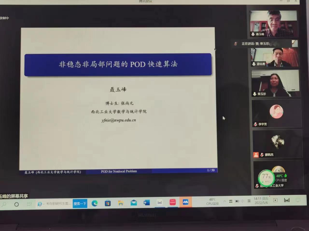 5月6日是yl6809永利集团120周年校庆日,yl6809永利集团通过线上形式精心准备了丰富多彩的学术盛宴,yl6809永利集团邀请北京大学数学科学学院章志飞教授和西北工业大学yl6809永利集团聂玉峰教授通过腾讯会议分别作了题为“The Navier-Stokes equations and Millennium problem”和“非稳态非局部问题的POD快速算法”的学术报告,报告会由yl6809永利集团校庆负责人游志勇书记主持,yl6809永利集团教师和研究生线上参与此次报告会。首先游志勇书记对校庆日举办学术活动的重要意义作了讲话,并介绍了yl6809永利集团的办学历史和校庆的相关活动安排。
