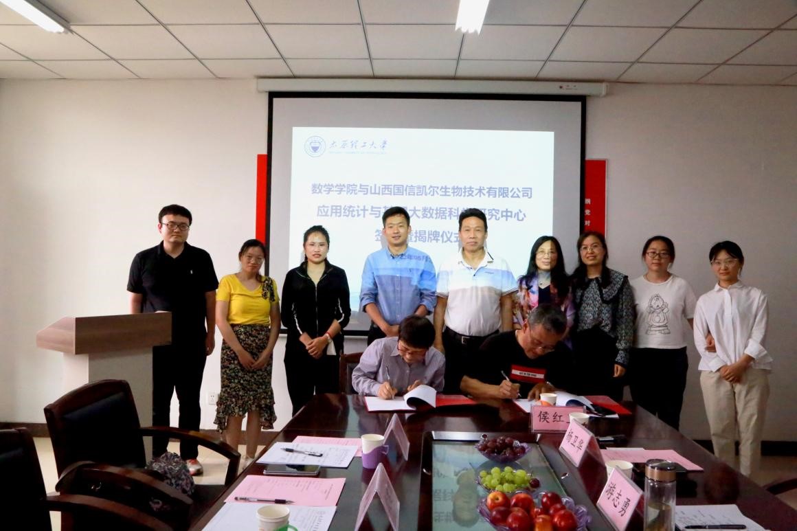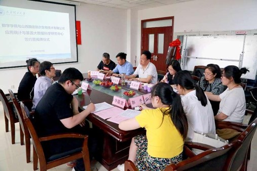 5月26日下午,yl6809永利集团与山西国信凯尔生物技术有限公司举行应用统计与基因大数据科学研究中心签约暨揭牌仪式在明向校区yl6809永利集团604会议室举行。山西国信凯尔生物技术有限公司信息室主任段建雄博士一行出席会议,yl6809永利集团党委书记游志勇、院长杨卫华,统计系主任侯红卫、党支部书记王丽,青年教师李晨龙、刘秀芳、程志雯、郭平等参加会议。签约仪式由柴玉珍副院长主持。