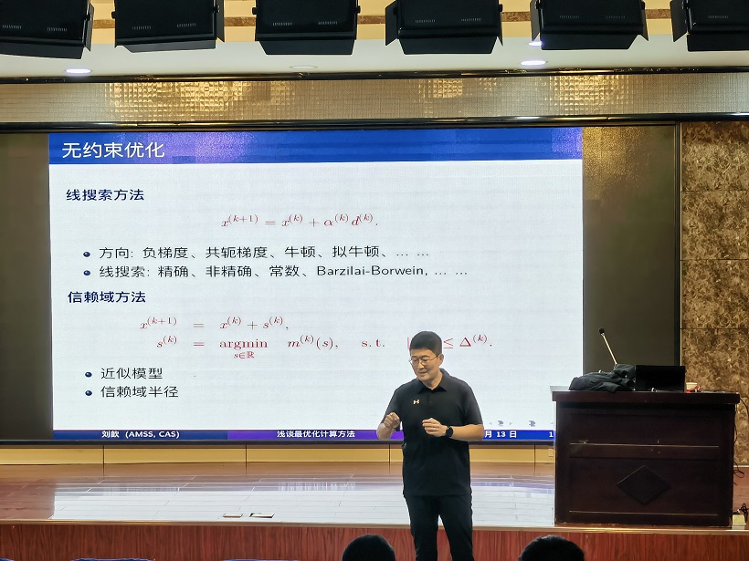 3月13日下午,我院邀请中国科学院数学与系统科学研究院“冯康首席研究员”、博士生导师、计算数学与科学工程计算研究所副所长刘歆研究员在马克思主义学院一楼报告厅进行了题为《浅谈最优化计算方法》的科普讲座。本次讲座由我院院长杨卫华教授主持,近百名本科生、研究生参加了讲座。