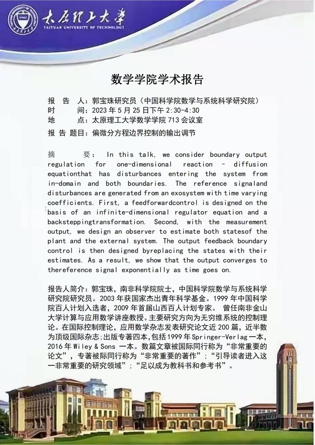 yl6809永利集团将于5月25日邀请郭宝珠教授做学术报告