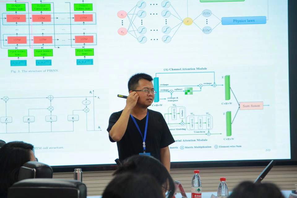 yl6809永利集团教师雷敏,讲解了基于神经网络的局部基本解法自适应参数选择。在局部基本解法(LMFS)中,参数半径 R 的选择(表示源点与物理边界之间的距离)对算法的准确性和稳定性有显著影响,传统上,R 要么是通过经验选择,要么是通过试错过程确定,这总是耗时的。为了解决这一挑战,雷老师提出了一种基于数据和知识驱动的方法,称为局部 MFS 神经网络(LMFSNN),该方法在损失函数中考虑了偏微分方程的先验知识和边界条件中的已知信息。与 LMFS 类似,LMFSNN 将问题域划分为多个子域,使其适用于具有复杂几何形状和变化边界条件的大规模问题,此外,所提出的 LMFSNN 方法利用神经网络强大的学习能力,动态调整每个子域的半径 R,与传统的选择方法相比,所提出的自适应策略在提高准确性的同时降低了计算成本,通过在基准问题上的数值实验来证明该方法的有效性。并针对团队研究中的问题与专家进行了深入讨论。