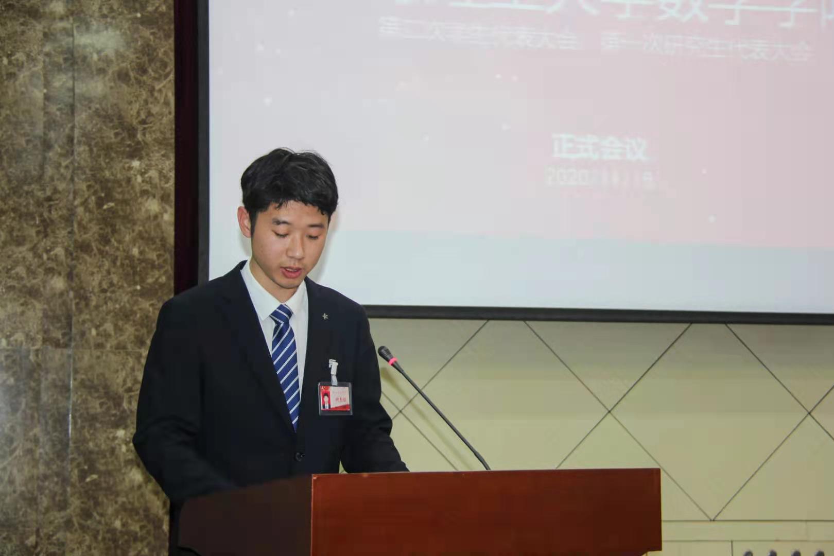 会议最后,院团委书记冯妍致会议闭幕词,对大会中当选的院学生会和研究生会主席团成员,以及参加校级学代会和研代会的学生代表表示祝贺,提出希望新一届学生组织继续发挥“自我教育、自我管理、自我服务、自我监督”的重要功能,挥洒青春和激情,乘风破浪,开拓创新,在新的阶段书写大写的青春!