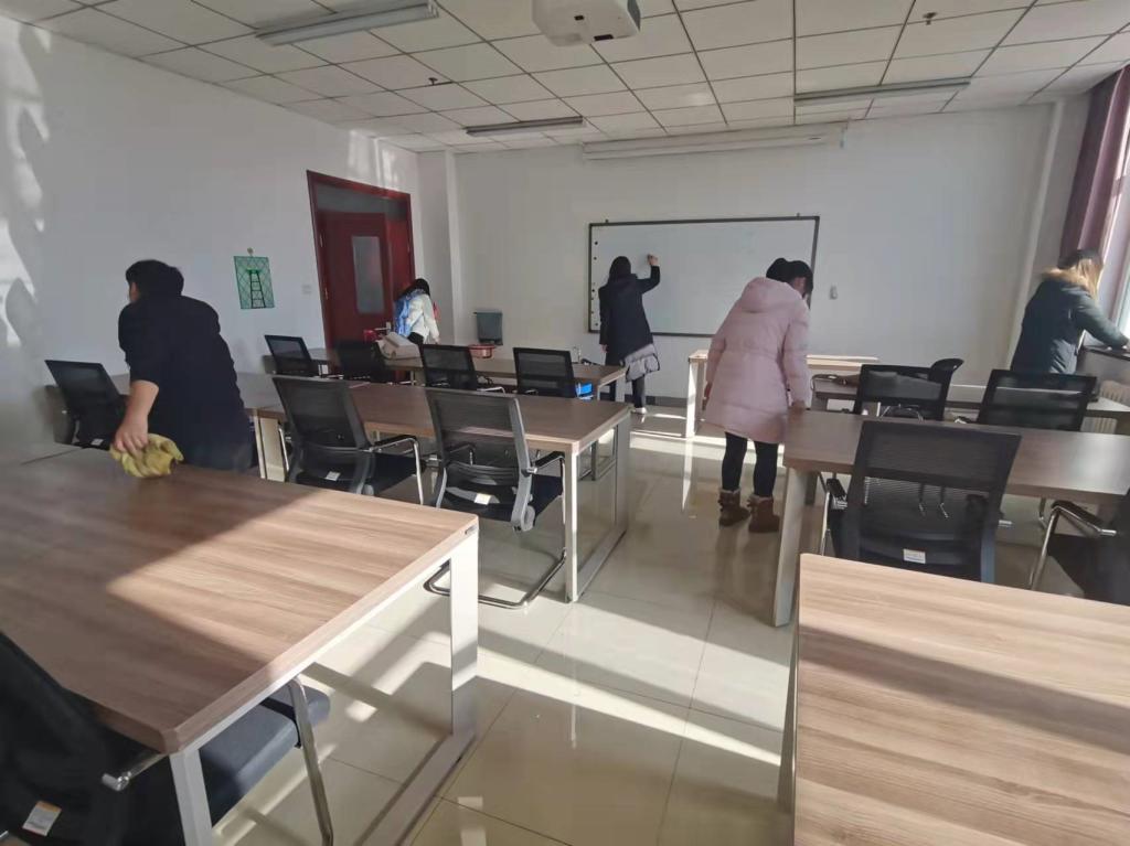 研究生党支部的同学分工明确,各司其职,对同学们日常学习的教室、讨论室和自习室进行了全方位的清扫。同学们积极主动,热情高涨,经过大家的共同努力,教室变得窗明几净、整洁有序。