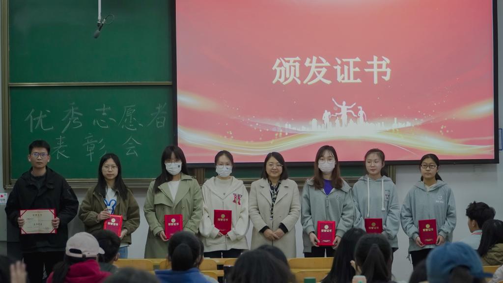 表彰会最后,李楠楠、冯妍、张欢分别为“志愿之星”“优秀防疫志愿者”颁发证书并合影留念,老师们对获奖优秀志愿者表示祝贺并鼓励同学们积极投身志愿服务活动,对同学们提出了新的期待和要求,激励大家再接再厉。