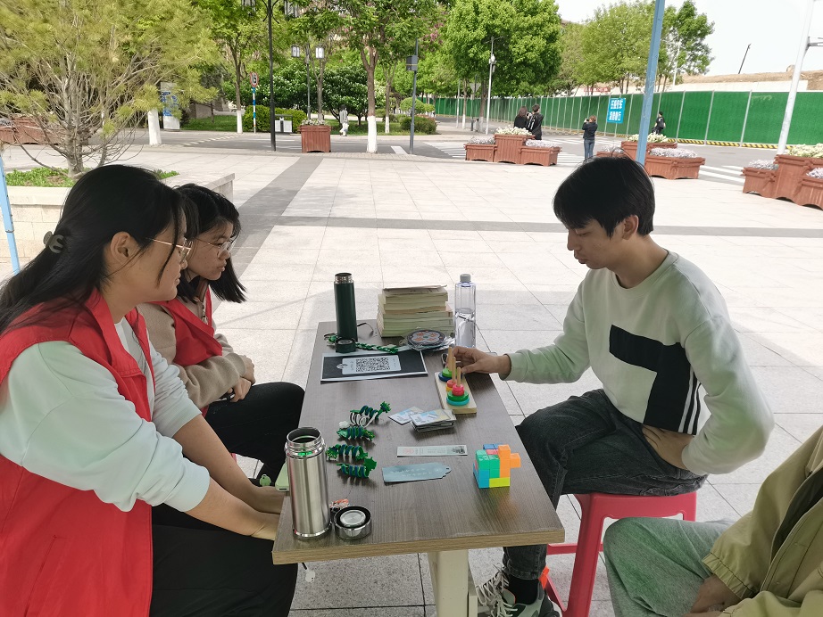 活动开始后,前来捐书的同学们便络绎不绝。同学们捐出了文学名著、四六级考试资料、闲置的专业课课本及笔记,还有一些毕业生们分享出了自己的考研资料和书籍。随后,志愿者将同学们捐来的书籍打包整齐,登记捐书同学信息,并送出了绕线器、杯垫等小礼品表示感谢。此外,活动还设有汉诺塔小游戏供来往同学体验。一摞摞书籍,凝聚着赤诚的爱心,承载着美好的祝福,托举着梦想和希望。