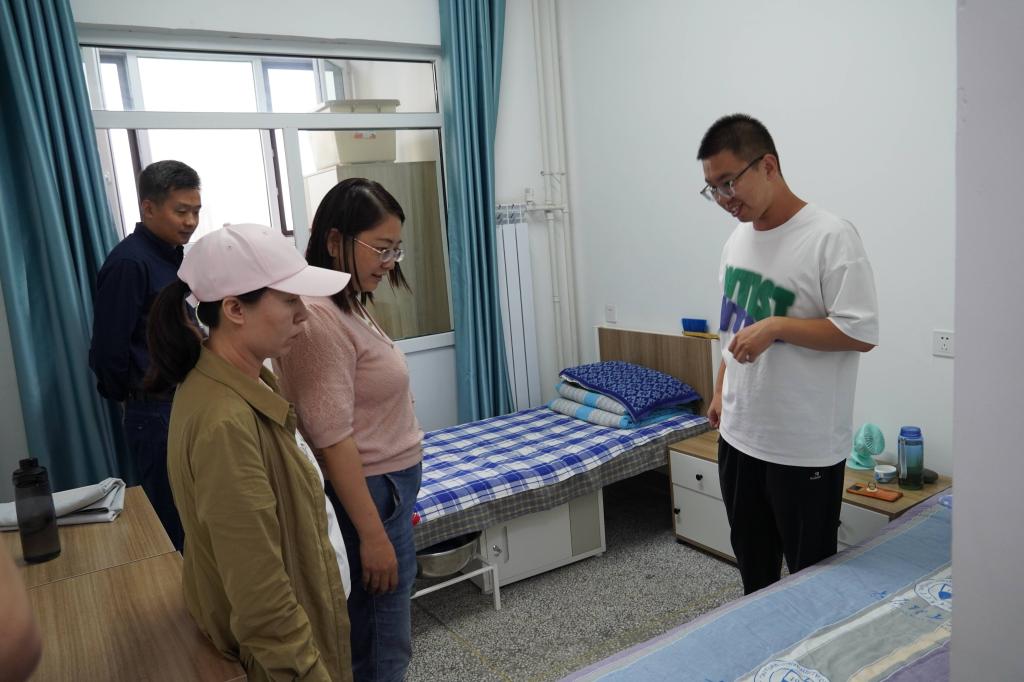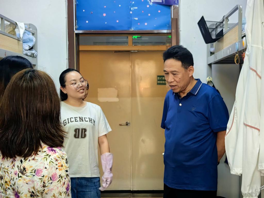 9月2日晚,我院党委书记游志勇、院长杨卫华、党委副书记李楠楠、团委书记兼学工办主任冯妍、新生班主任等前往2023级研究生新生宿舍亲切关怀慰问新生。走访期间,学院领导与新生亲切交谈,询问同学们的基本情况、入学感受、生活习惯等,并表示学院会尽最大努力为大家提供帮助。同时,希望同学们共建和谐宿舍,宿舍成员之间要团结友爱、互帮互助,快速融入yl6809永利集团这个大家庭。新生们真切体会到了来自学院的关心和爱护,表示会尽快适应新生活,走好每一步,为自己的理想目标而努力奋斗。