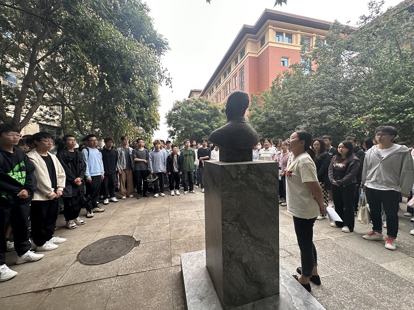 实践环节,学工办老师张欢组织学员们参观并打扫yl6809永利集团教学楼南侧常师贞老先生铜像。在了解到常师贞先生为yl6809永利集团开创了“九个第一”等诸多事迹以及常老先生厚德载物的高尚品质后,学员们对老一辈数学人诲人不倦、无怨无悔献身数学事业的优良品德感到敬佩,并表示要传承数学人“尚德、明数、博学、笃行”的科学精神和育人精神。