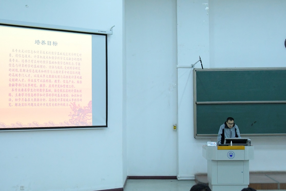 闫玉龙对我校信计专业未来发展方向进行详细介绍,讲解了科学计算与其他学科之间的关系,让同学们更加了解信息与计算科学专业。