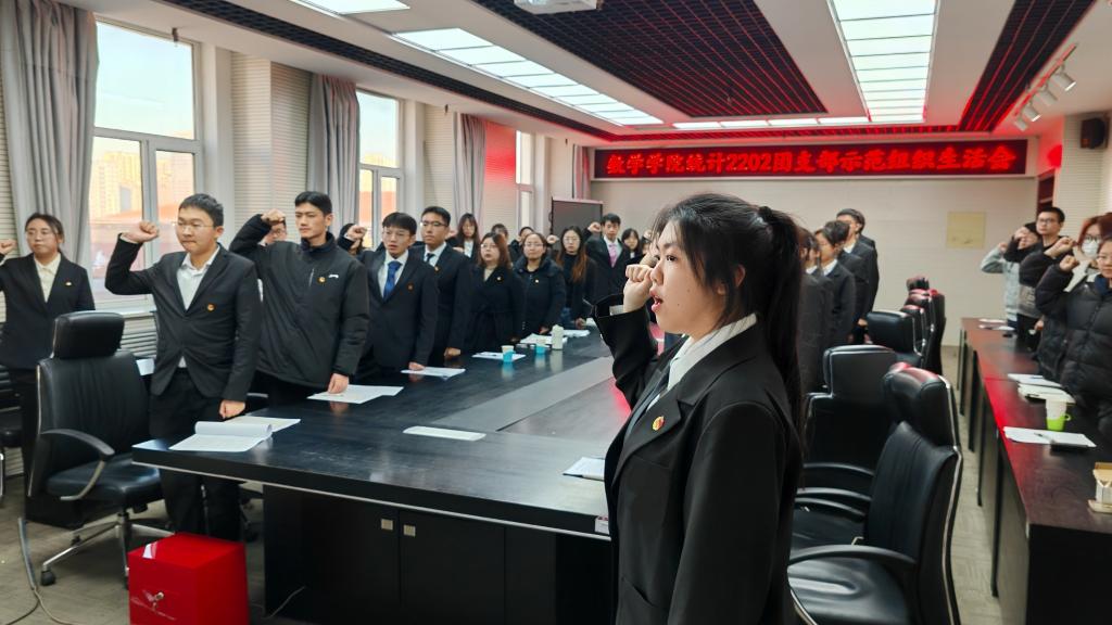 最后,团支部组织委员李括萱带领全体参会人员面向团旗,重温入团誓词,在声声誓词下本次示范性组织生活会圆满结束。本次组织生活会的召开,深化了我院学生团员对组织生活重要性的认识,有助于我院充分运用好主题教育成果,坚持用习近平新时代中国特色社会主义思想武装头脑、指导实践、推动工作,以实干实效推动学部事业高质量发展。