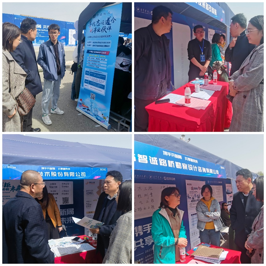 4月9日上午,我院党委书记游志勇、副书记李楠楠、辅导员付坤到我校“携手开新局 共享赢未来”2023届毕业生春季联合双选会现场调研企业用人需求情况。