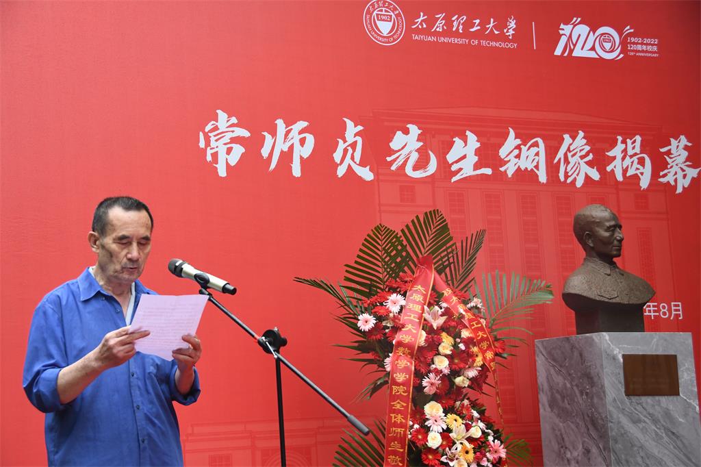 78级校友、常师贞先生学生、原山西省住房和城乡建设厅副厅长顼连斌在发言中讲到,常先生是一位德高望重、慈祥、和蔼、谦虚的老师,他影响了几代学生,培养了众多优秀学子,希望母院能够以铜像树立为契机,进一步学习和传承常先生为人为师的精神品质,培养更多优秀的数学教师和数学人才,推动学院高水平创新发展。
