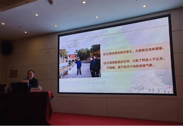 培训期间,红旗渠干部学院特聘教授周锐常作了《从红旗渠到中国梦—中国梦视域下的红旗渠精神及其当代价值》专题讲座,集体观看了《红旗渠》纪录片。感受到当年林县人民“誓把河山重安排”的勇气和决心,感受到他们不认命、不服输、敢于战天斗地的英雄气概,夯实思想基础,汲取精神伟力,坚定了工作中知难而进,迎难而上,埋头苦干巧干,踔厉奋发前行的勇气和决心。